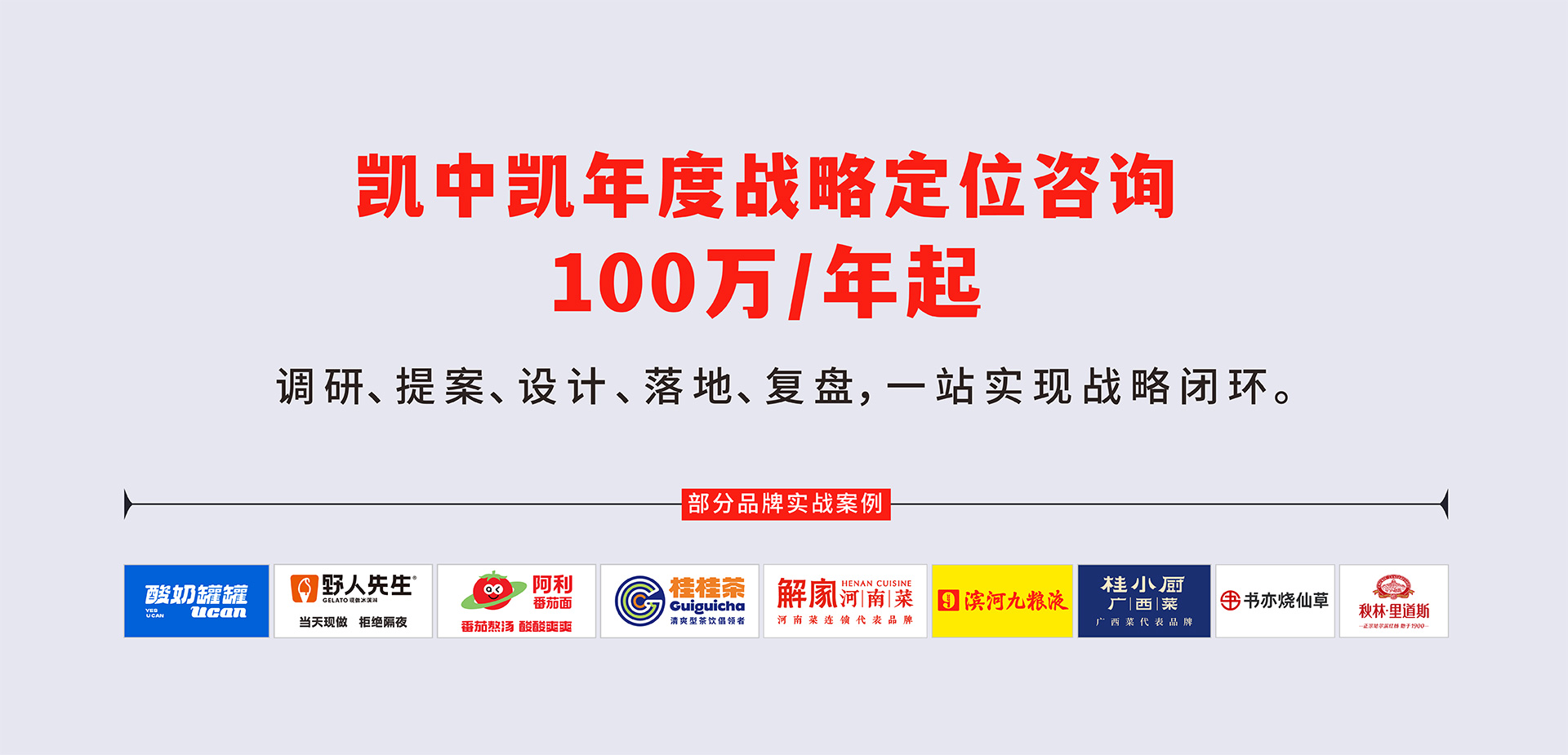 凱中凱戰略定位咨詢,更擅長餐飲及快消品戰略定位咨詢。在學習和實踐特勞特定位理論的十年來,我們咨詢服務的客戶以餐飲及快消品行業居多。為了更好的服務餐飲及快消品客戶,我們針對餐飲及快消品行業做了大量的思考和研究,積累了大量相關咨詢經驗,也形成了一套餐飲及快消品戰略定位咨詢的工作方法和工具。因此,相對于其它行業,我們更擅長餐飲及快消品戰略定位咨詢。